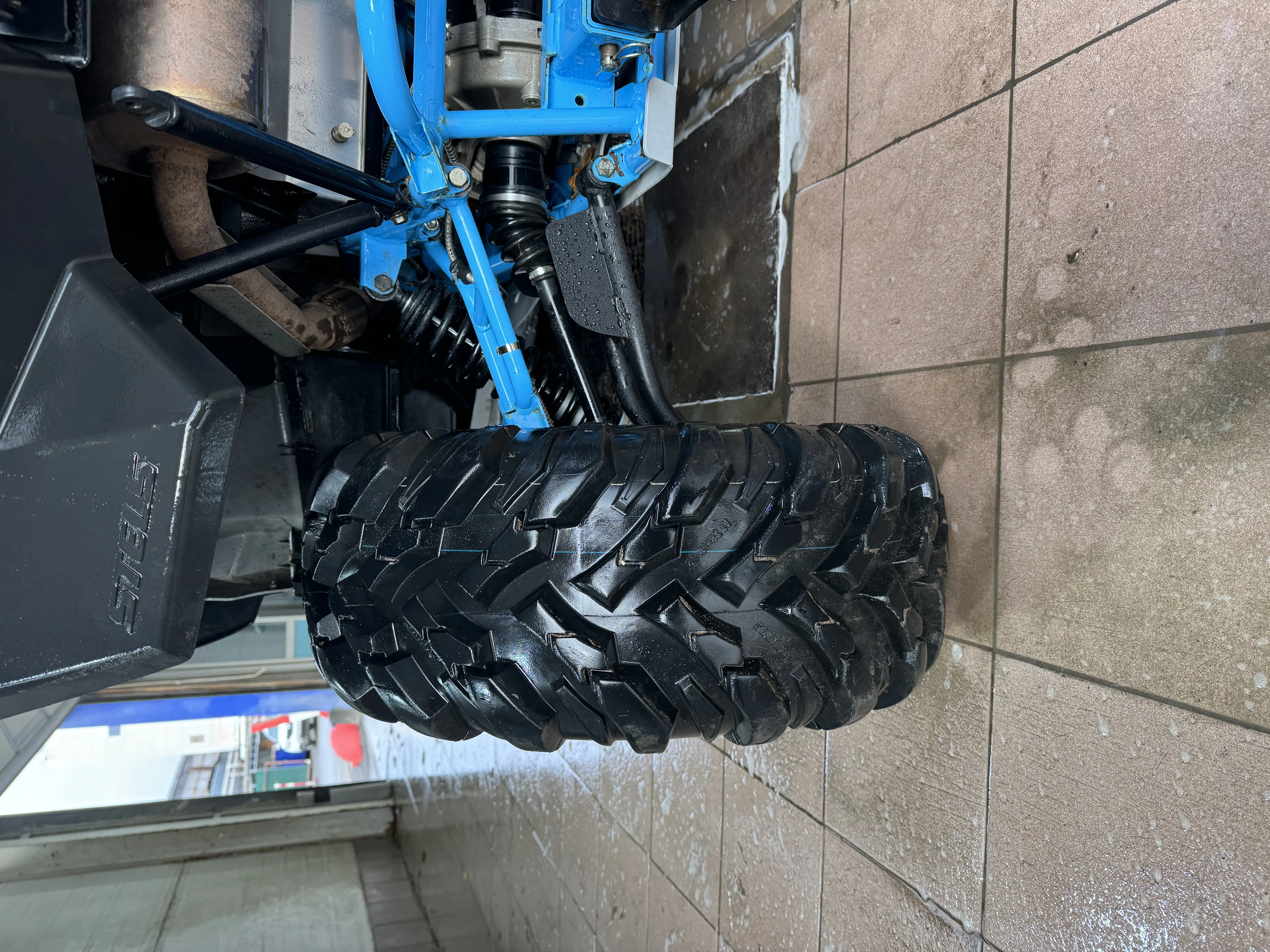 Маркировка квадрошин немногим отличается от маркировки других автошин. Здесь обозначение типоразмера шины представлено в дюймах (английская система измерений), где первое число обозначает высоту покрышки, второе – ее ширину, третье – внутренний посадочный размер. Привычная метрическая система также указывается на шинах.